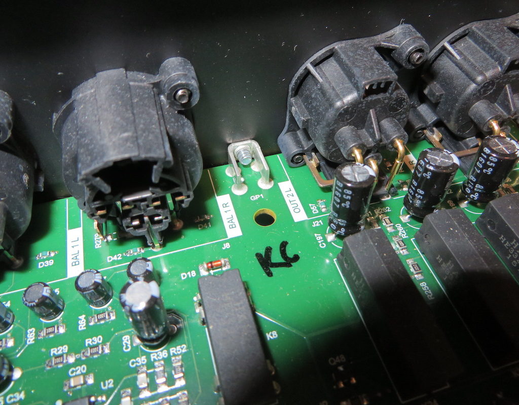 I’ve found the fix is simple. Scraping a bit of paint off the chassis under the screw head allows the star washers to get a good bite on the chassis when installed. This enables a reliable contact between the audio board signal ground point and the chassis, and a distortion-free output signal. If you have issues like this and need some help resolving it, contact service here.